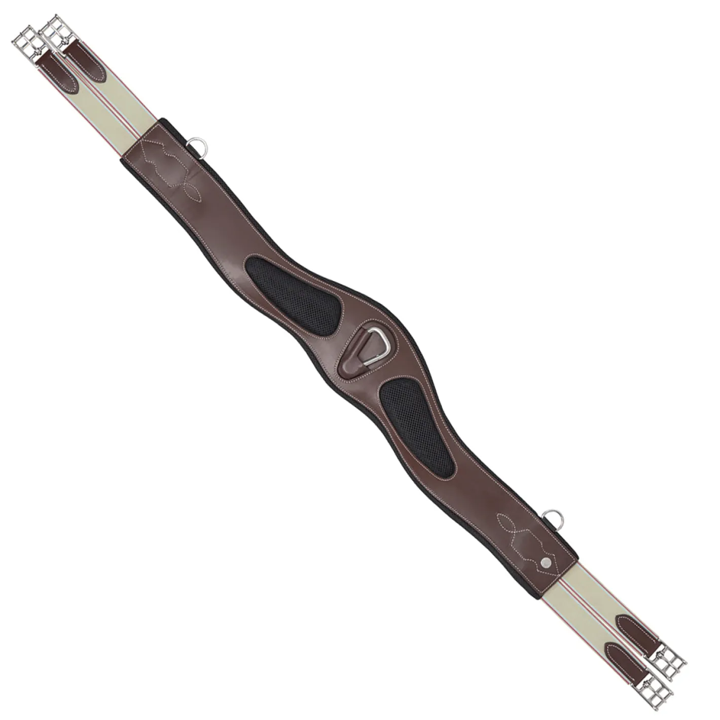 The CoolBlast Performance Girth has an anatomical shape to follow your horse’s conformation comfortably. Offset buckles on elastic ends help keep it in place and maximize the effect of the anatomical shape.