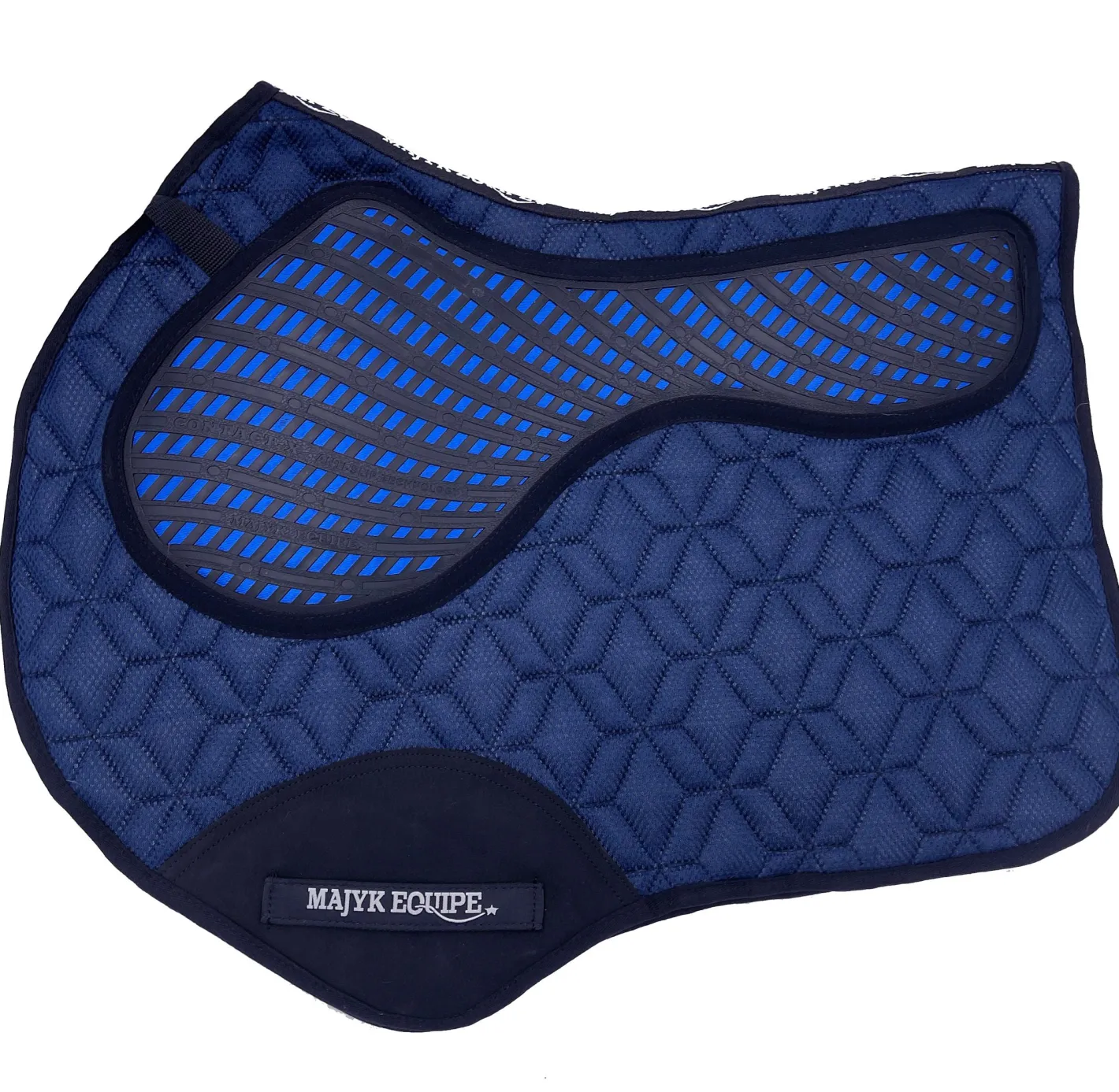 This featherlight Majyk Equipe® Contact-X Impact Cross Country Pad is a perfect combination of lightweight mesh and an anti-slip saddle area lined with breathable mesh. A proprietary shock-absorbent material inside the saddle area helps prevent “bounce back” between you and your horse, promoting a comfortable ride for both you. This pad is cut to perfectly complement your jump saddle.