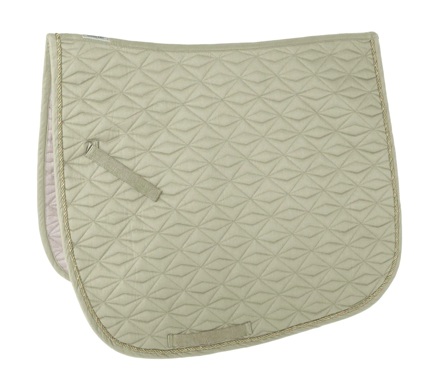 The DS SoftBack Dressage Pad offers a twist on a classic style with double diamond quilting. It is made with a durable poly/cotton top, a layer of poly fill for cushioning and a brushed lining as a soft surface against your horse.