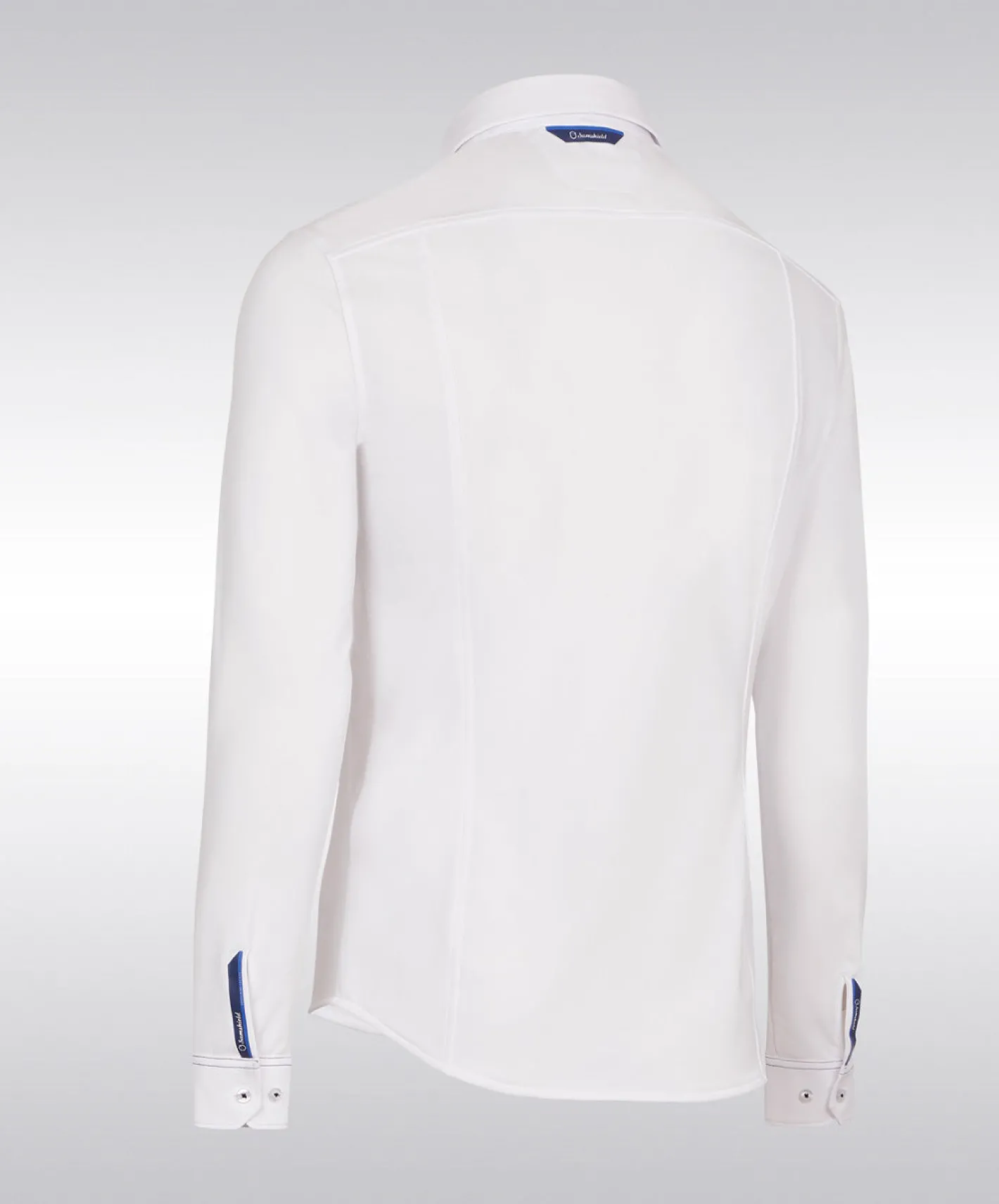 Stretchy, sporty and elegant, the Samshield® Men’s Georges Show Shirt keeps you comfortable in competition. It’s made from ultra-breathable technical fabric, with the collar, back and sleeves adorned with contrasting stripes and decorative seams. Finished with the Samshield logo on chest.