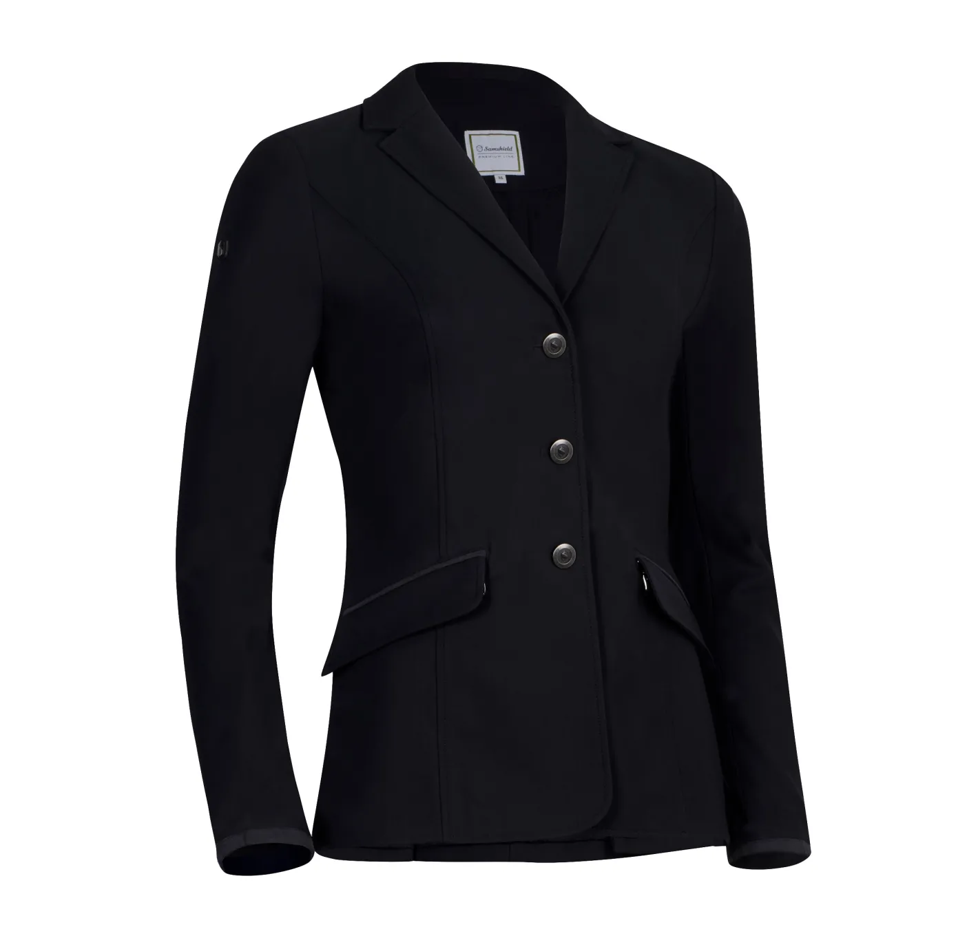 The Samshield® Alix Show Coat delivers technical performance to support your best competitive rides. Made of breathable, highly stretchy fabric to ensure your unrestricted motion, this ladies’ show jacket is wrinkle-free and easy-care. It offers ultraviolet protection and water repellency. Lined with stretch mesh for extra breathability, it features: