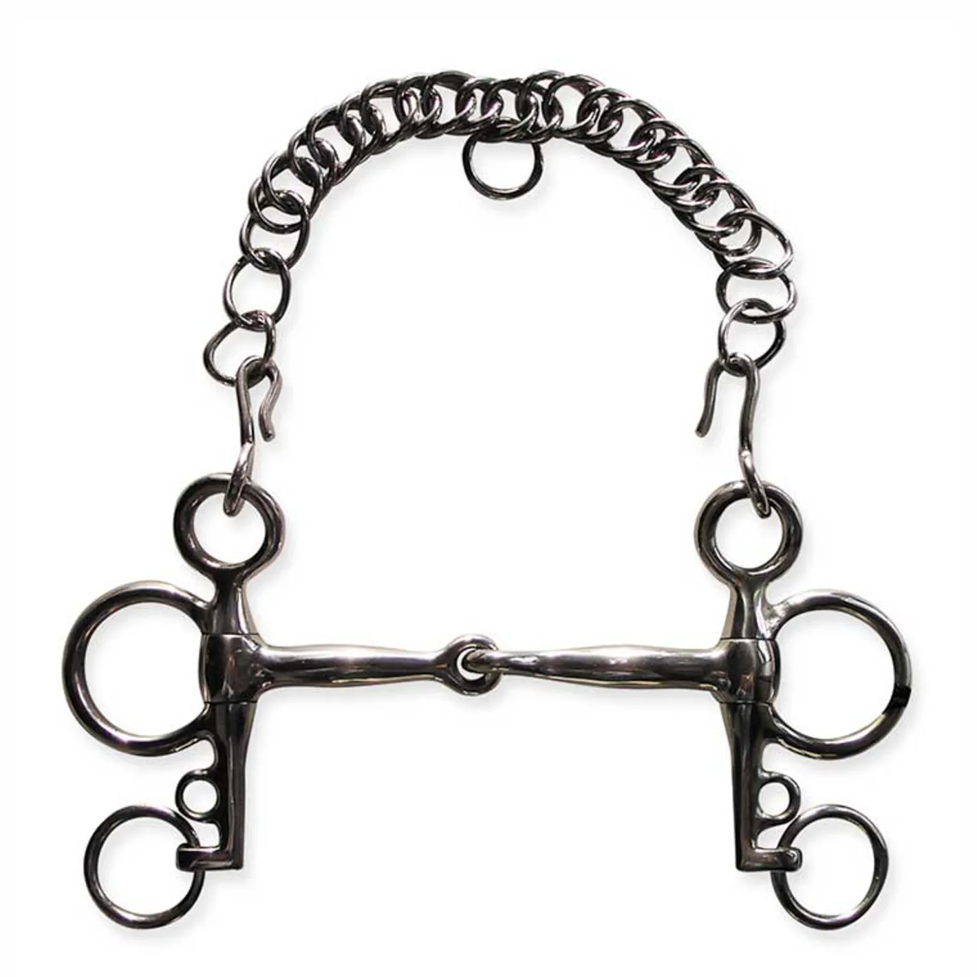 Metalab Solid Jointed Pelham is a Level 3 bit made of stainless steel. Mouthpiece is 13mm diameter; cheeks are 4″ Pelham.