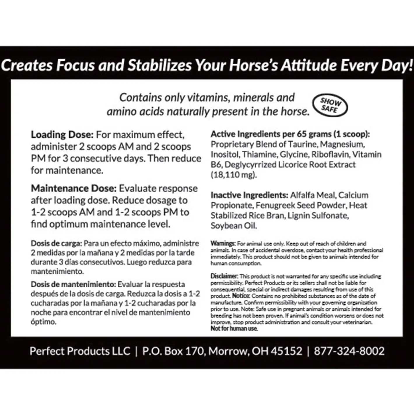 Perfect Prep EQ™ Training Day+ Calming Pellets is the most powerful daily equine calming formula from Perfect Products. Made in the USA, this supplement helps relax even the most anxious and overreactive horses. Fed daily, it helps create focus and stabilize attitude. Training Day+ Pellets include the addition of gastric soothers for additional comfort and calming. Effects begin immediately and build gradually over three to five days.