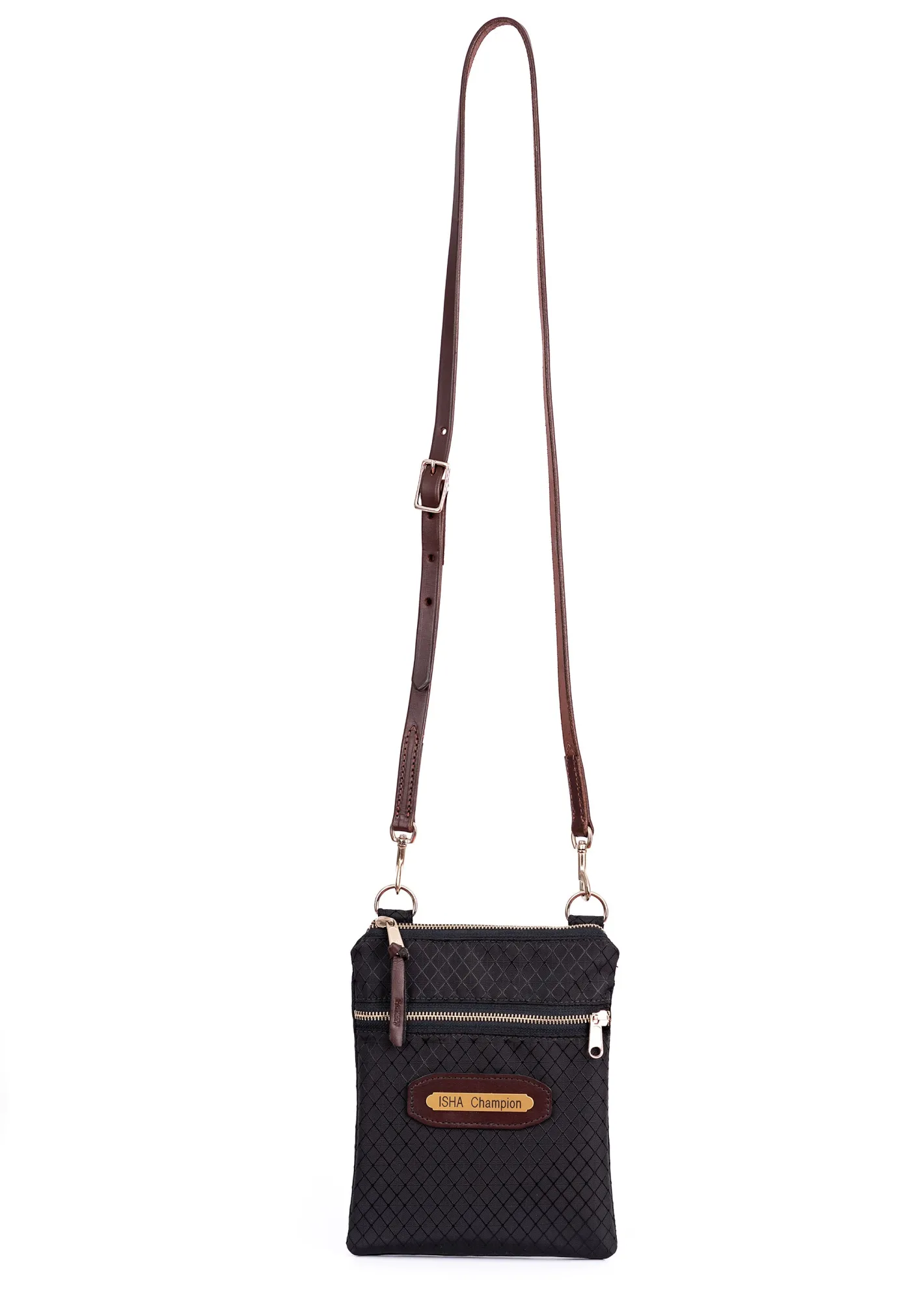 PRODUCT DESCRIPTION: Perri’s® Champion Crossbody Bag with Leather Accents and Nameplate