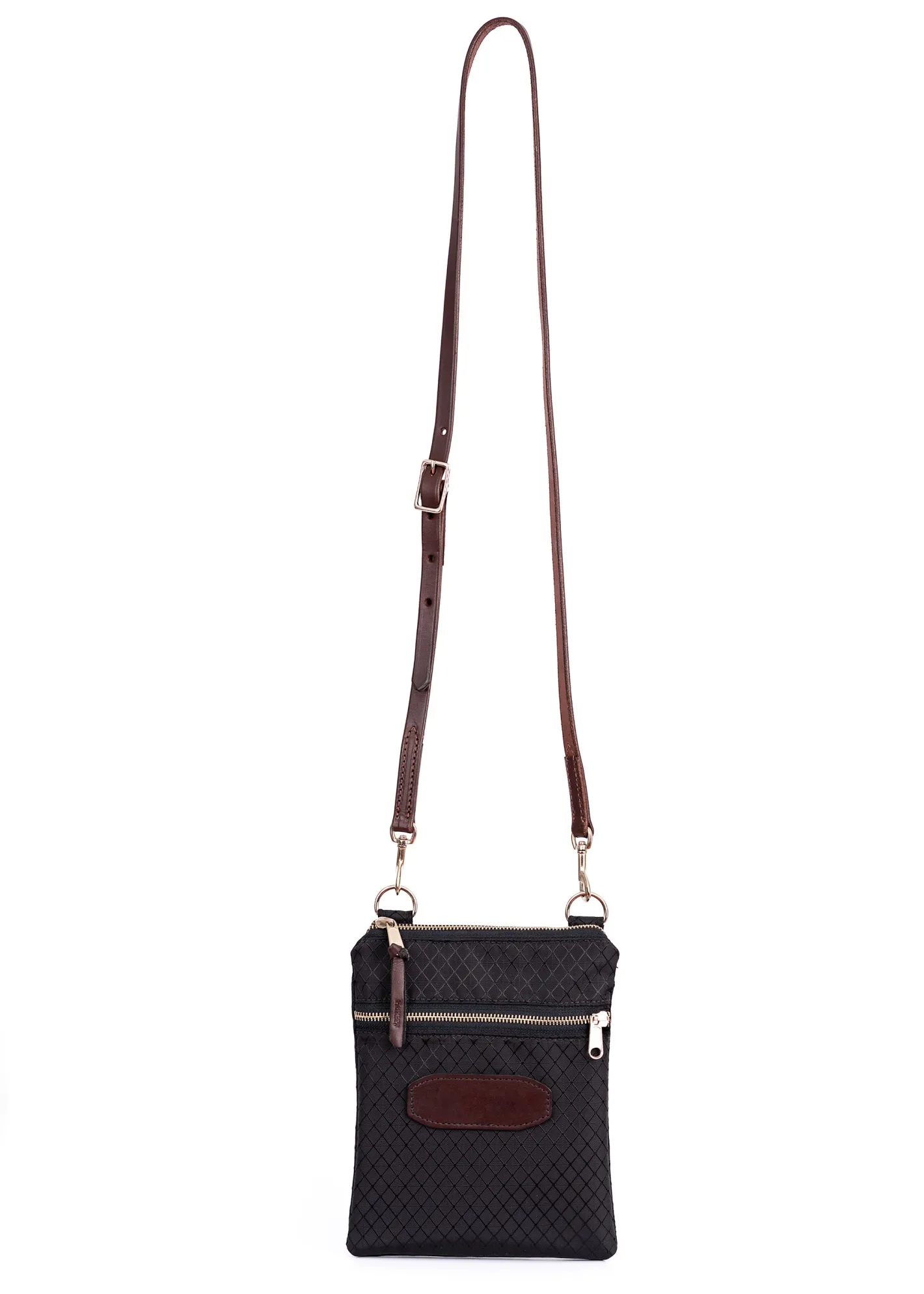 Classy and stylish for everyday use and durable enough for the barn, this Crossbody Bag features durable black Cordura® nylon finished with Wickett & Craig American leather accents. A premium metal zipper opens the top of the bag; a large front-zip pocket adds storage. Removable, adjustable leather strap.
