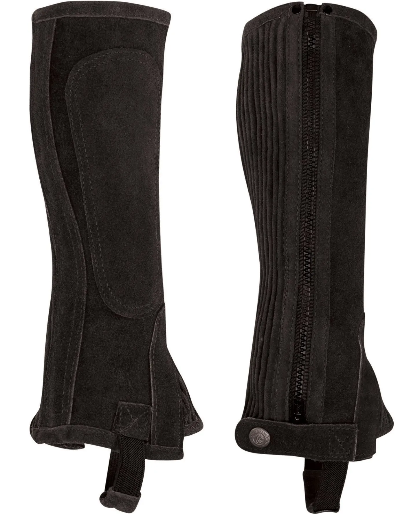Perri’s® Adults’ Zipper Half Chaps deliver great quality at an exceptional price. Crafted from supple suede cowhide, these half chaps feature reinforced inner legs and stretch panels. The panels provide a near custom fit and help the chap form to your legs to provide peak performance and comfort.
