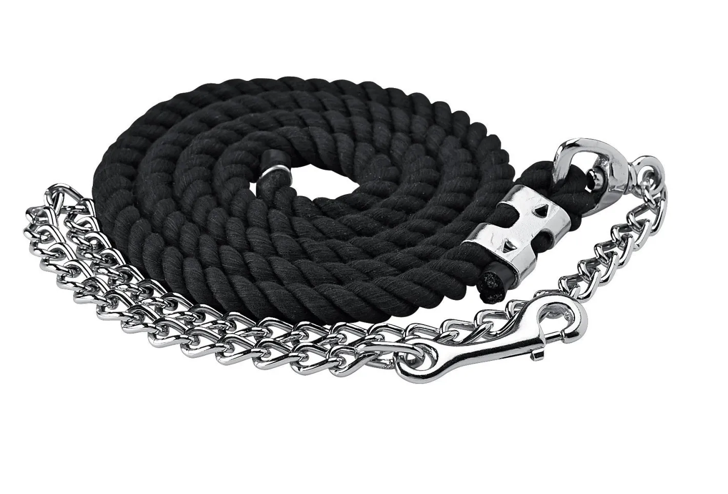 The Suffolk™ Cotton Lead with Shank is an everyday essential. Chrome-plated 18″ chain with trigger snap and top clamp. Cotton portion is 6’L.