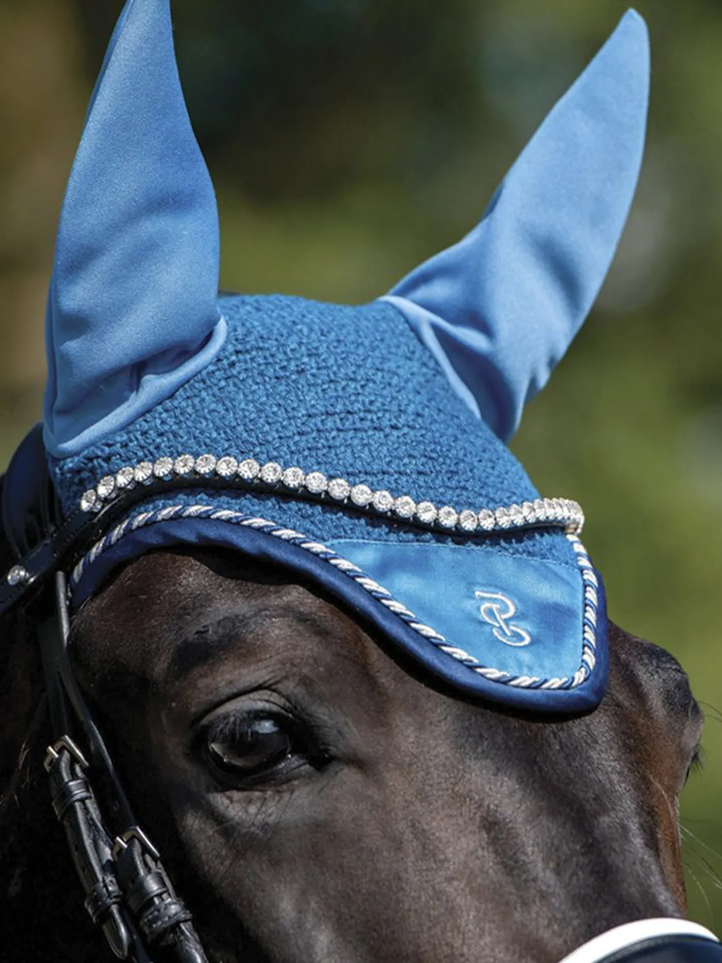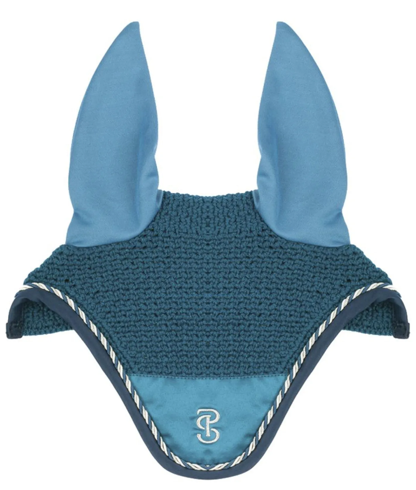 The PS of Sweden Signature Ear Bonnet has a shapely fit and elasticized ear covers. This fly bonnet is made from stretchy, breathable, antibacterial quick-dry material with a hand-knitted crochet body. Designed to comfort sensitive horses, it features decorative details, including braided rope trim, a fabric front embroidered with logo and soft fabric trim.