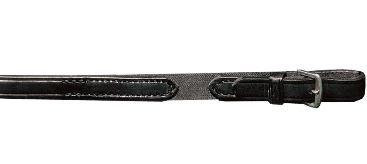 Elasto-Rein also improves a horse’s comfort and encourages a horse to respond more softly, which is particularly useful when educating young or difficult horses to accept the bit. It looks like a traditional, flat leather dressage rein, but has the advantage of the elastic Rein-Aid inserts discreetly sewn in. With a leather backing alongside the built-in elastic, the reins are designed to limit the amount of stretch so that a rider’s control is not compromised. The elastic inserts are part of a continuous rein, which makes Elasto-Rein legal for USEF/USDF dressage competitions. Complete with leather hand stops. Pair.