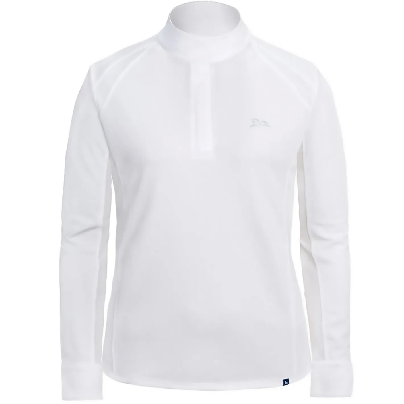 R.J. Classics Sofia Plus-Size Long Sleeve Shirt is an essential piece for your show clothing wardrobe. The modern seam lines, zippered placket and simple detailing makes it the perfect choice for riders of all levels and styles. Moisture-wicking stretch fabric also features UPF 30 for sun protection and the ultimate comfort.