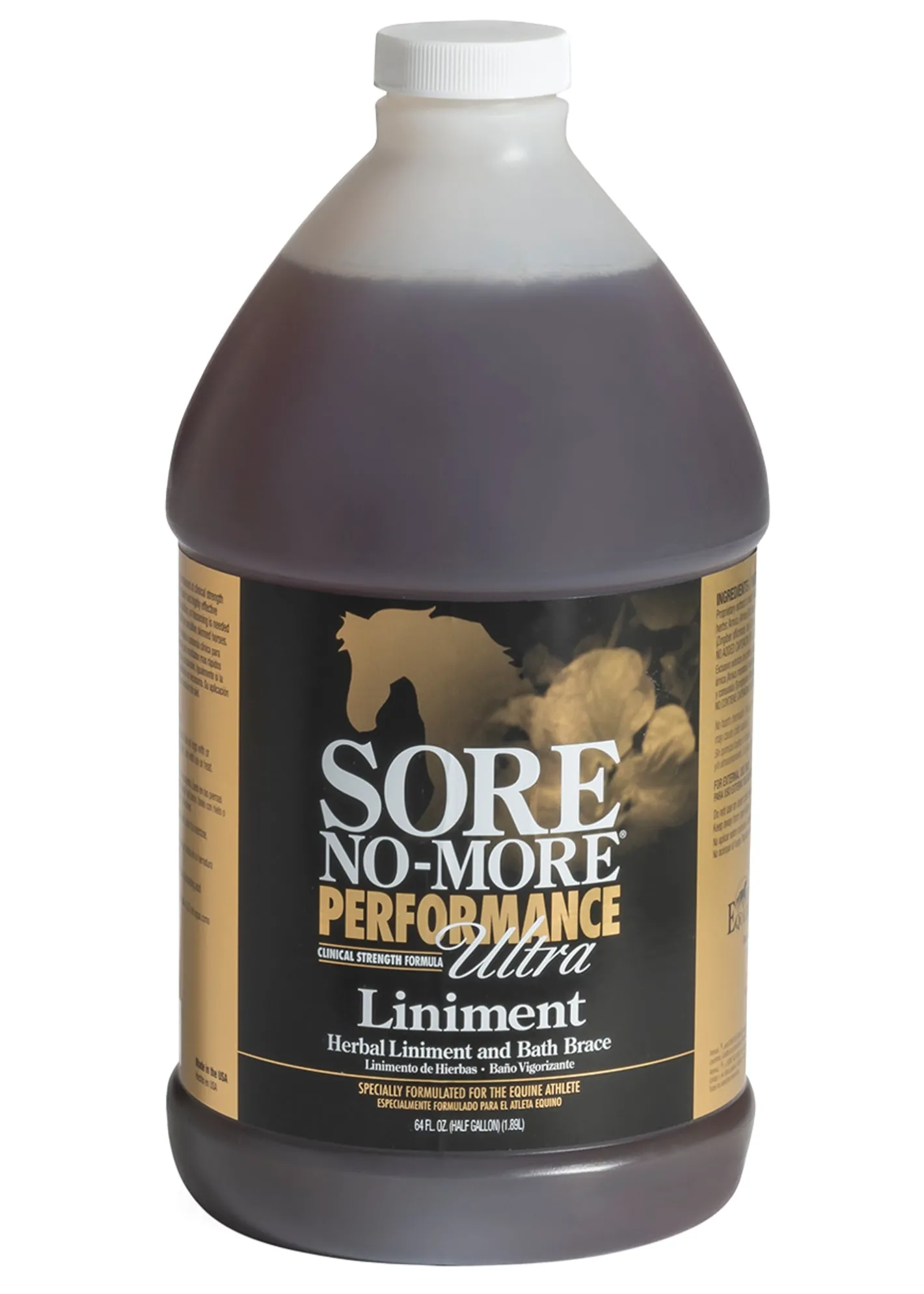 Sore No-More® Performance Ultra Liniment is an FEI-compliant herbal formula offering double the strength of Sore No-More Classic and Performance liniments. It is designed by veterinarians to offer fast-acting, proven relief from discomfort in performance horses.