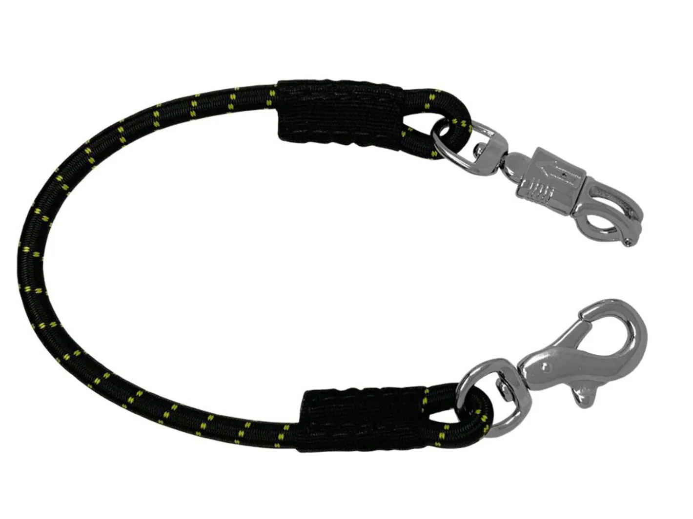 Showman® Bungee Trailer Tie has a quick-release panic snap on one end and a heavy-duty bull snap on the other. Made with strong nylon elasticized bungee rope to help absorb shock. 29″ long. Each.
