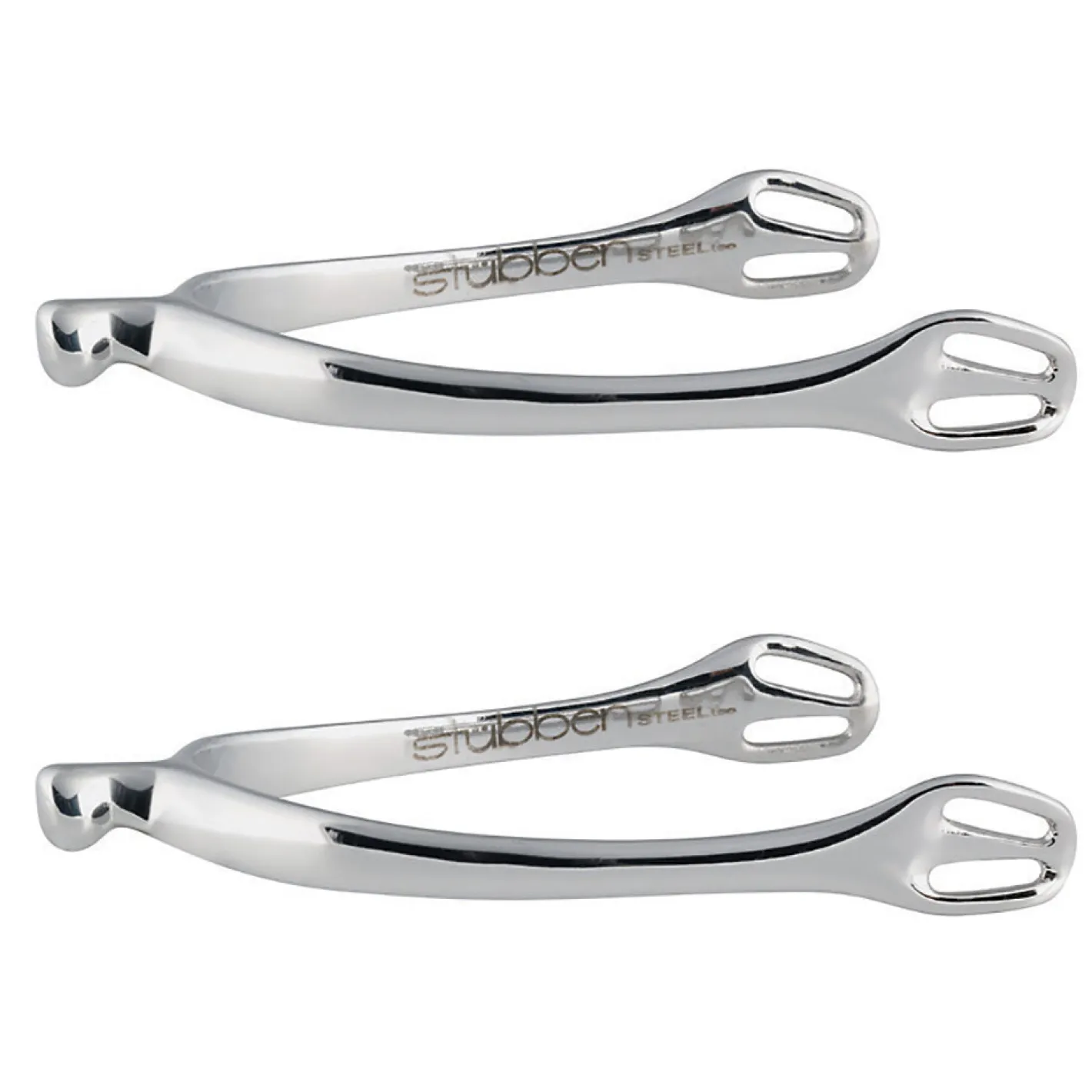 Stübben Steeltec Dynamic Spurs are made from a flexible stainless steel to fit both men and women. A V-shaped heel fits snugly while the offset spur strap loops help alleviate ankle bone pressure. Made with Stubben’s signature quality and great for schooling or show. 15mm. Pair.