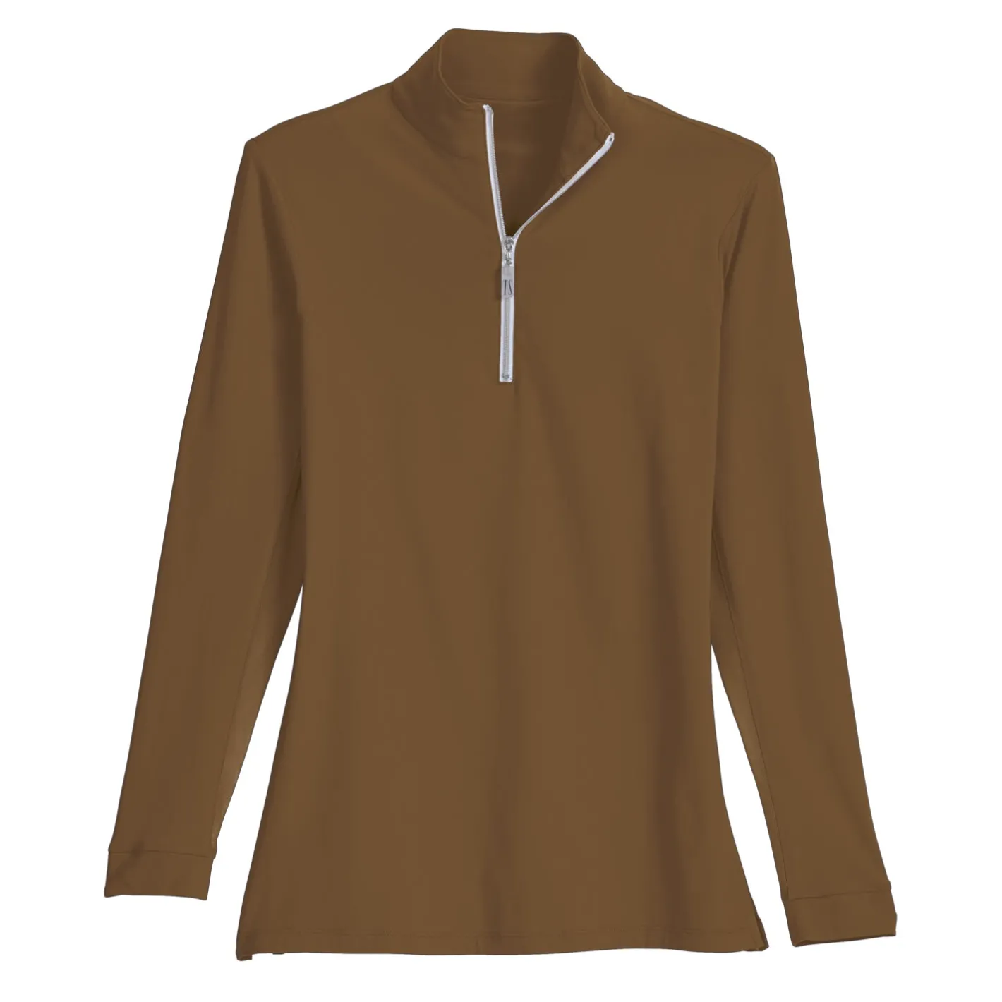 Long sleeves have full-length mesh panels to promote airflow for added cooling. This semi-fitted shirt is styled with a color-coordinated quarter zipper, stand collar and nicely finished cuffs.