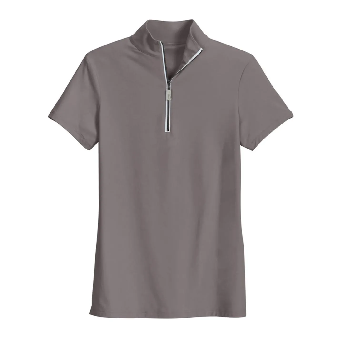 This semi-fitted riding top is lightweight, stretchy and moisture-wicking. A slightly brushed inner surface makes it feel luxurious on your skin. Styled for a polished look with a color-coordinated quarter zipper and stand collar.