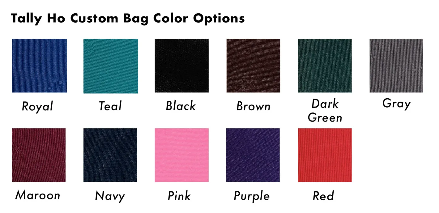 The Custom Fleece-Lined Dressage Saddle Carry Case by Tally Ho zips closed around your saddle’s flaps so that you can store it on a rack or rest it on a fence. Web handles position the saddle to be carried upside down. An optional shoulder strap can be added to carry the case right side up. Lining is black. Choose your case color and trim color. Consider adding a monogram for even more customization. Spine is 29 1/2″L; flaps are 25″L. Allow 4-6 weeks for delivery.