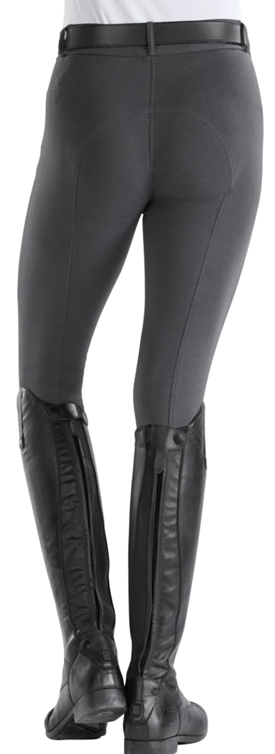 The pull-on waistband is comfortable and flattering, while the faux-fly front and belt loops offer the appearance of a classic breech. Elastic taped cuffs prevent the breech legs from riding up.