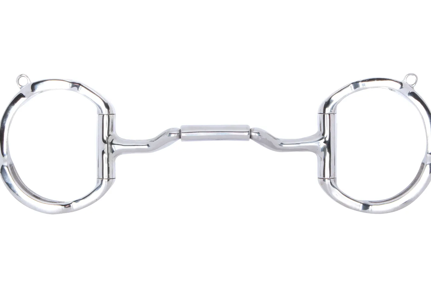 The bridle and reins slots, along with curb hooks, aid in Independent Side Movement™, which allows the rider to isolate one side of the bit for bending and lifting the shoulder while balancing the mouthpiece in the bridle. Stainless Steel with copper inlay.
