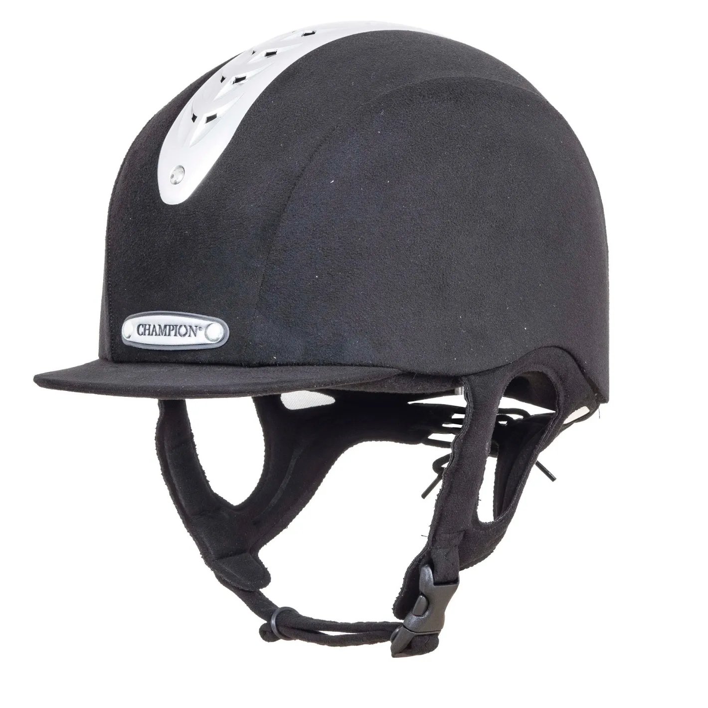 Champion® Revolve X-Air MIPS® Helmet** for those riders with a round head shape has a traditional fit that sits deeply on the head with a snug feel. Handmade in Great Britain, it boasts that latest in brain protection technology—the Multi-Directional Impact Protection System (MIPS) in a lightweight fiberglass shell.