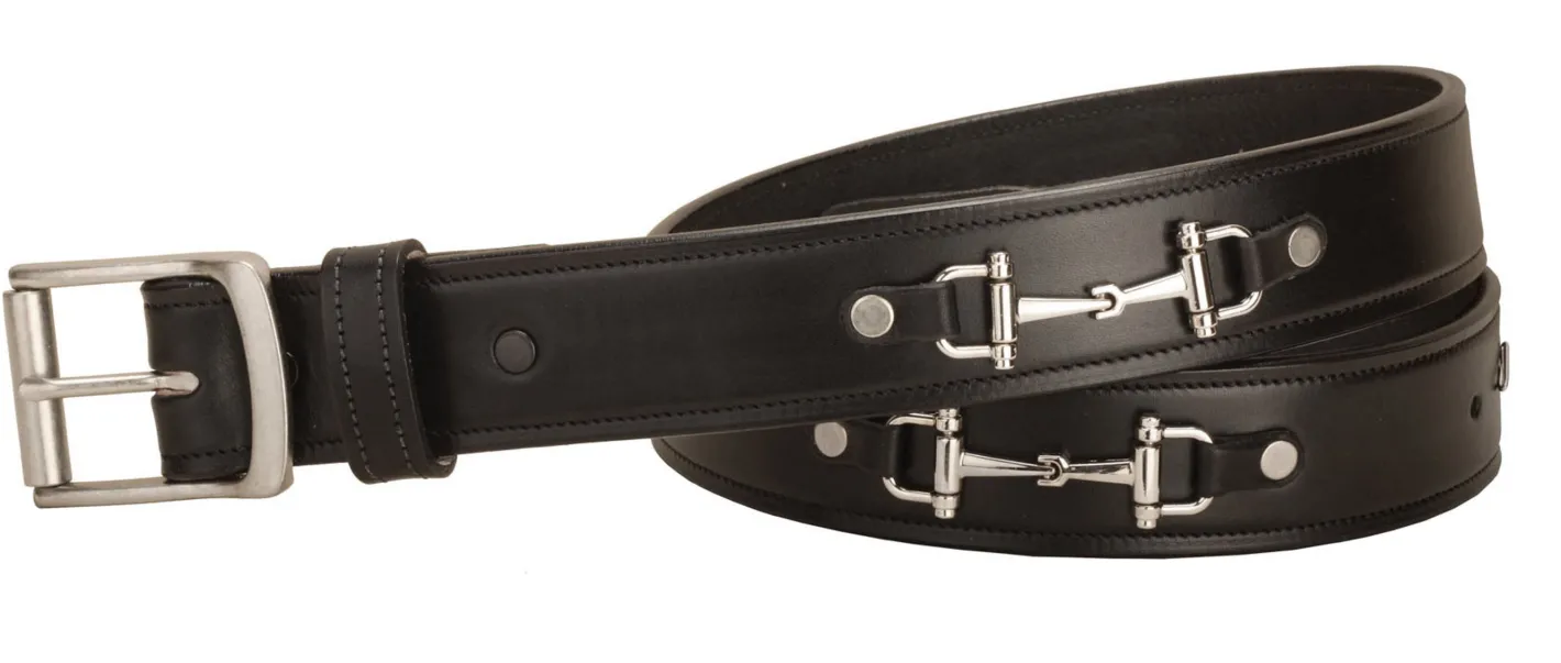 PRODUCT DESCRIPTION: Tory Leather 1 1/2″ Belt with Nickel Snaffle Bits