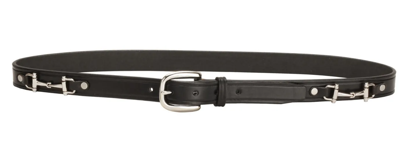 PRODUCT DESCRIPTION: Tory Leather 1″ Snaffle Bit Belt with Nickel Snaffle Bits & Buckle