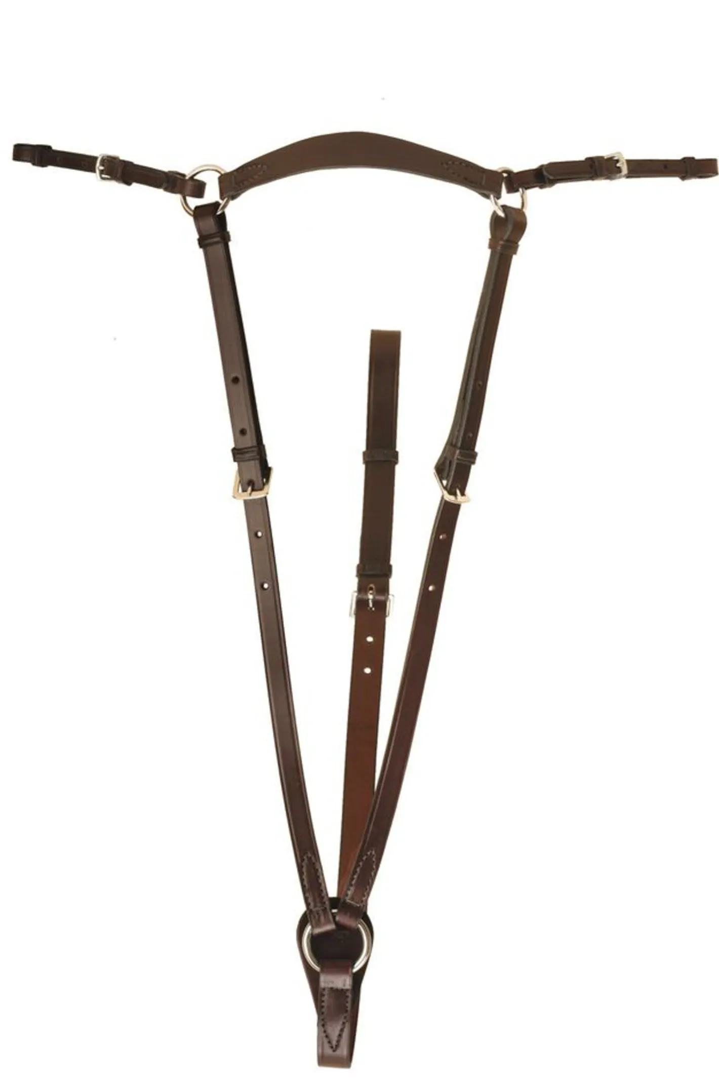Tory’s Heavy-Duty Hunt Breastplate is crafted in the USA from sturdy 3/4″ wide English bridle leather and fitted with stainless steel hardware. Adjustable shoulder straps and 1″ wide center strap.