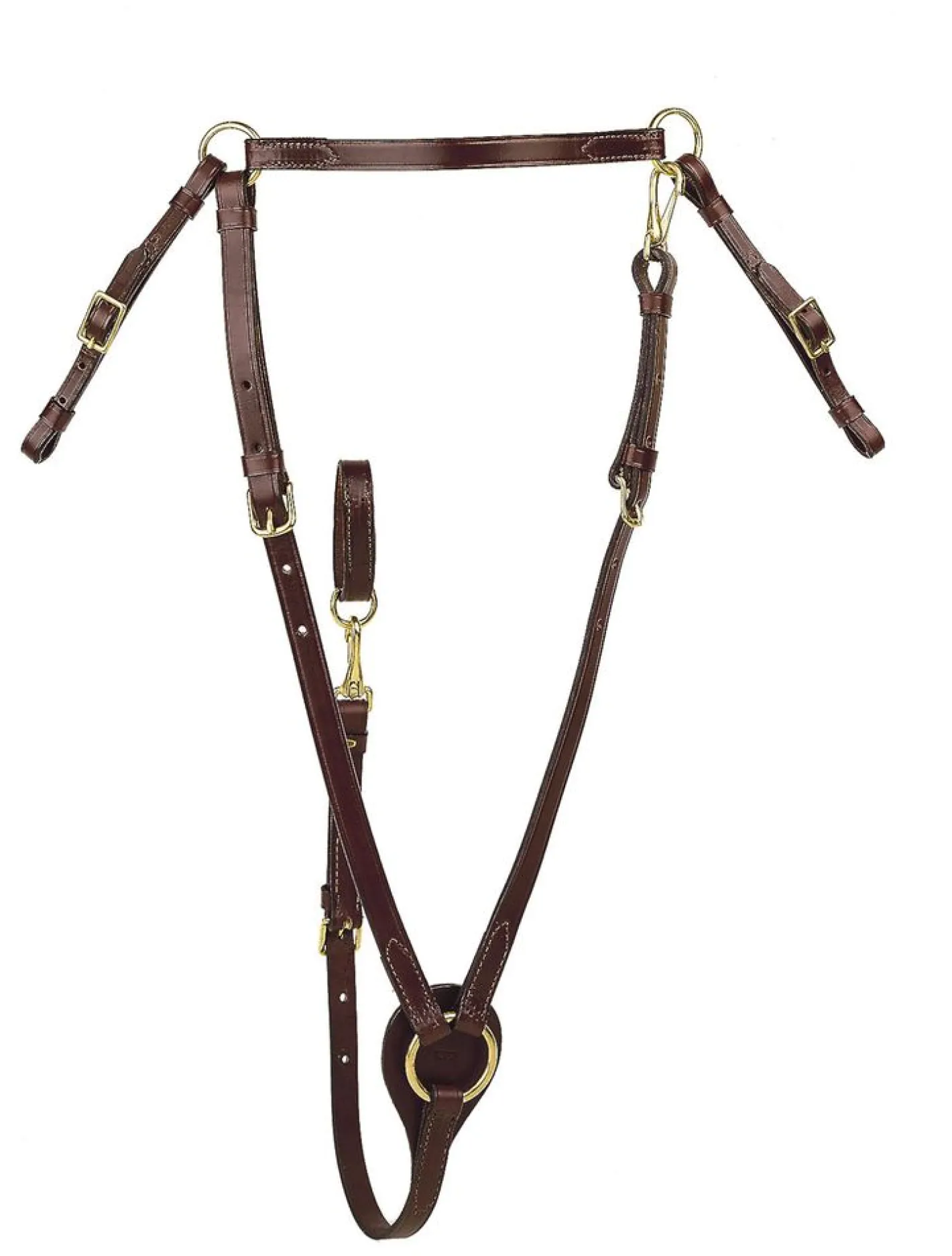 Tory’s Hunt Breastplate is crafted from 3/4″ wide flat vegetable-tanned American leather. A wither snap and girth loop allow easy on and off. Brass hardware.