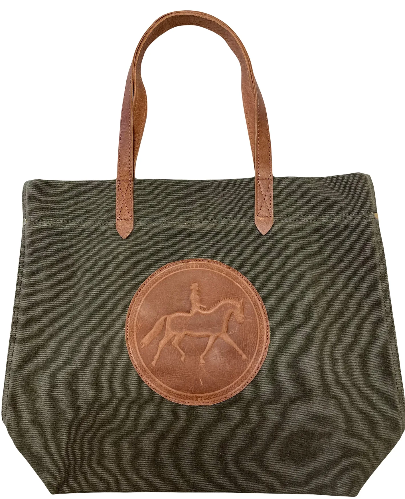Introducing the Tucker Tweed Equestrian™ Barn Bag made with garment-dyed heavy duty canvas featuring two-tone, remnant leather accents. Responsibly and resourcefully made by hand, this is the perfect tote bag for carrying essentials into the barn, away from the market and around the show ground. Durable and practical with reinforced stitching, this is the ideal bag for the active equestrian. 8″ Shoulder strap drop.