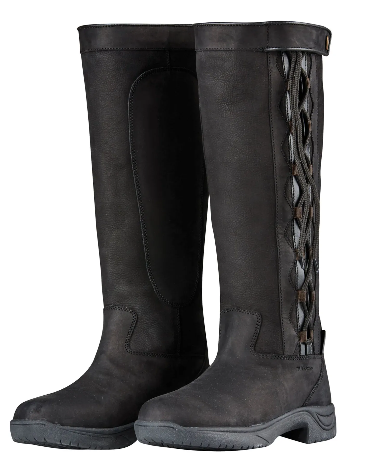 Waterproof and breathable, the Dublin® Ladies’ Pinnacle Boot II is the perfect equestrian lifestyle boot. The nubuck upper has a distinctive, full side lace adjustment and touch tape closure. Together, these features easily accommodate various calf widths and make this boot especially suitable for larger calves. It is lined in breathable nylon and includes the HBR membrane to keep moisture out.