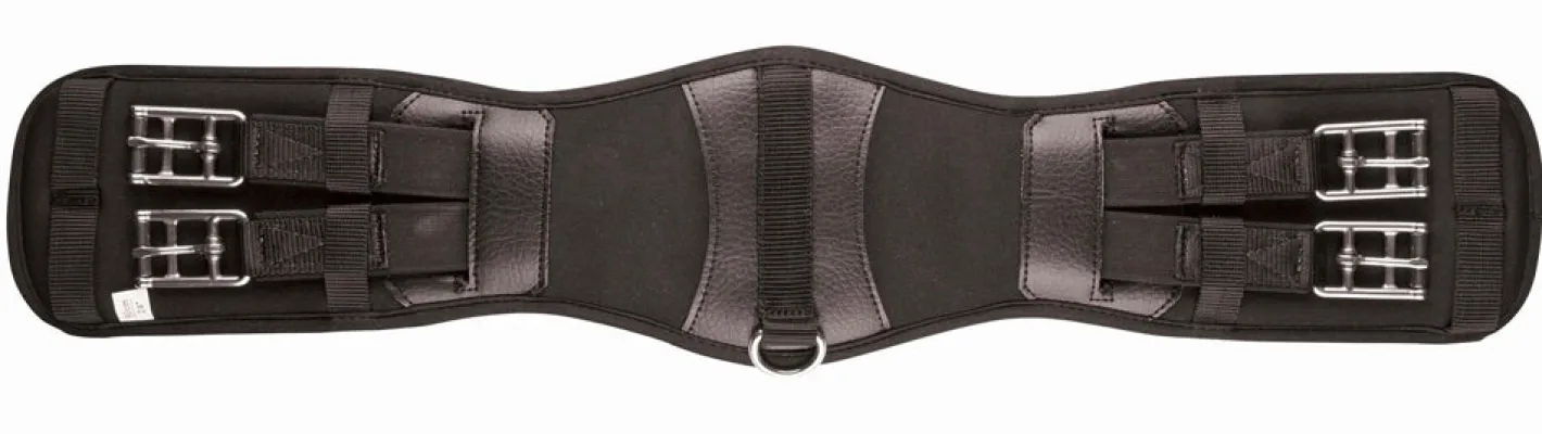 This short girth has roller buckles at each end to enable easy adjustments. Center D-ring allows easy attachment to training equipment.