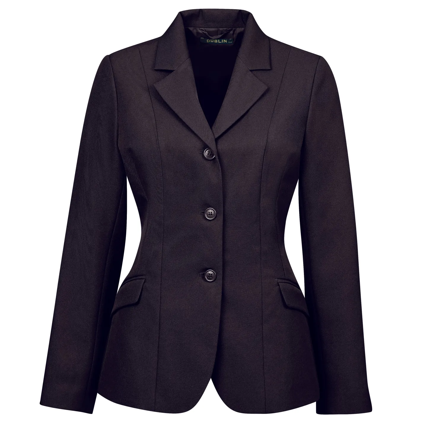 Back by popular demand, the affordable and traditionally styled Dublin® Ashby Show Coat features washable woven fabric. It’s fully lined, with a three-button front, two front flap pockets and double-vented back. Princess seam construction flatters your in-saddle form.