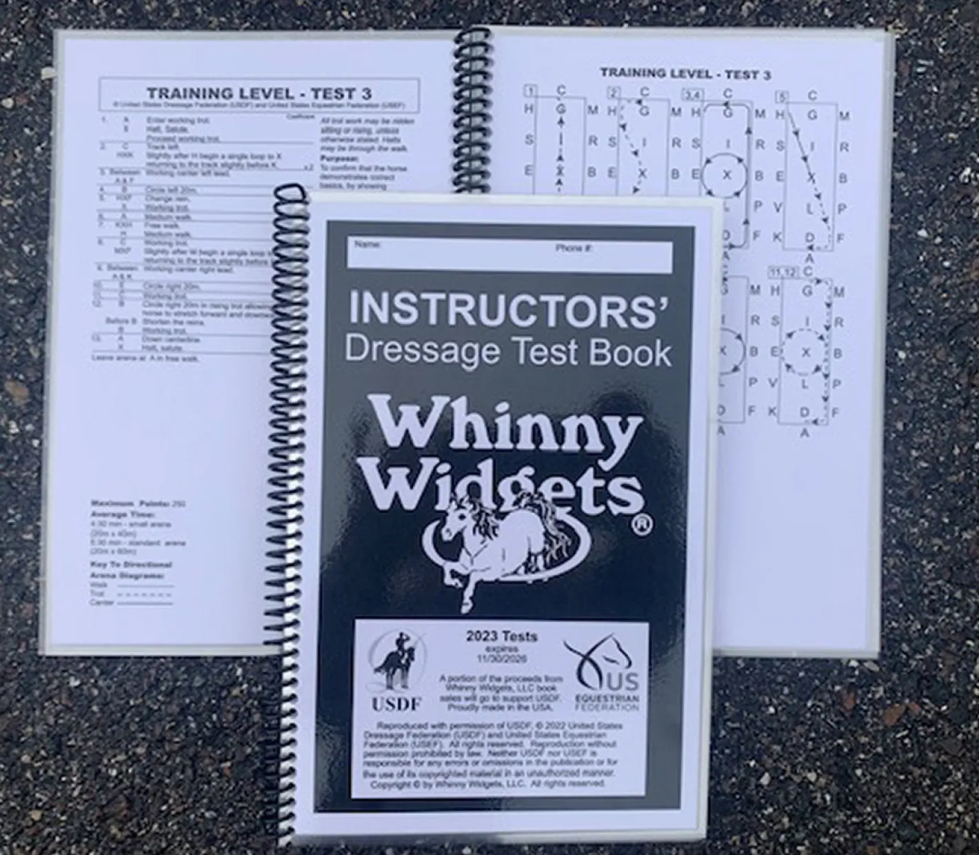 PRODUCT DESCRIPTION: Whinny Widgets® Instructors’ Dressage Test Book (2023-2027)