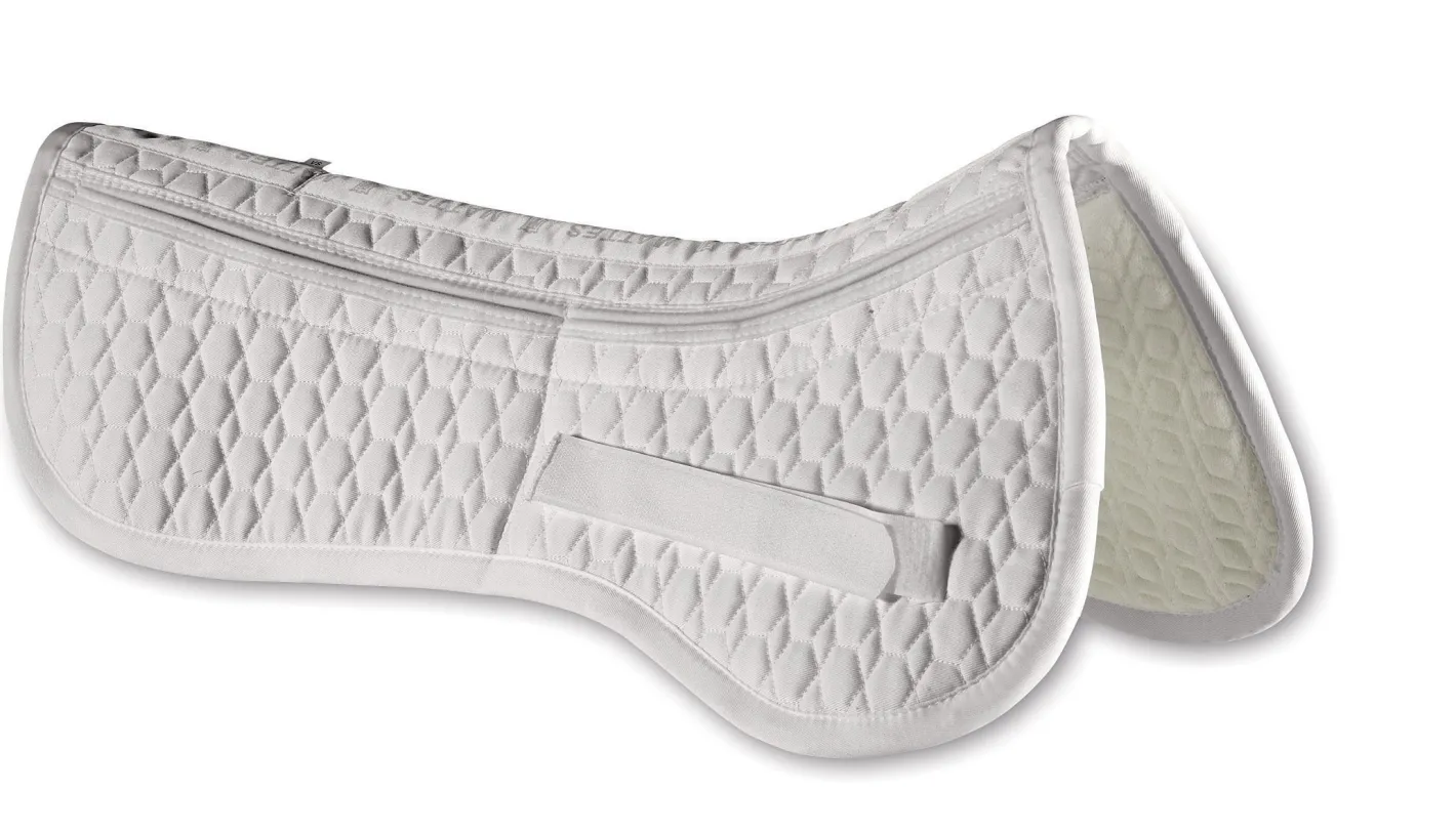 This low-profile half-pad style pairs light flannel on the underside and a quilted, heavy cotton top. In all-purpose and dressage styles.